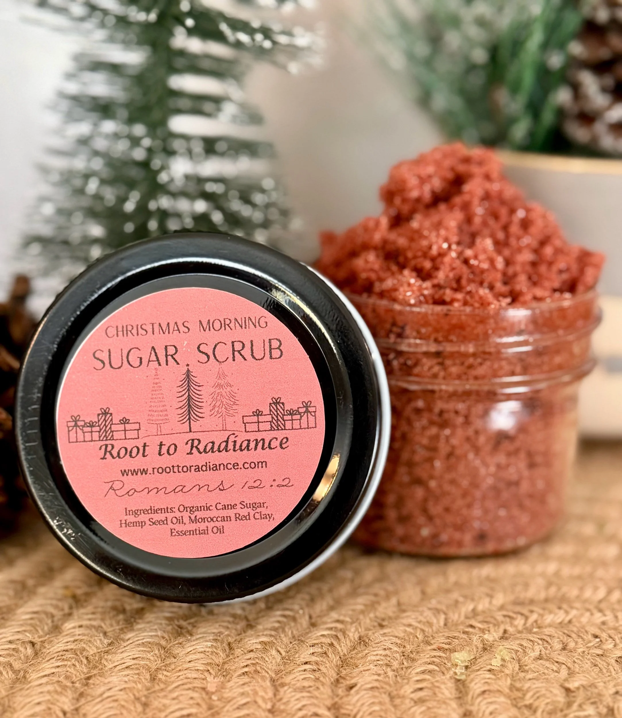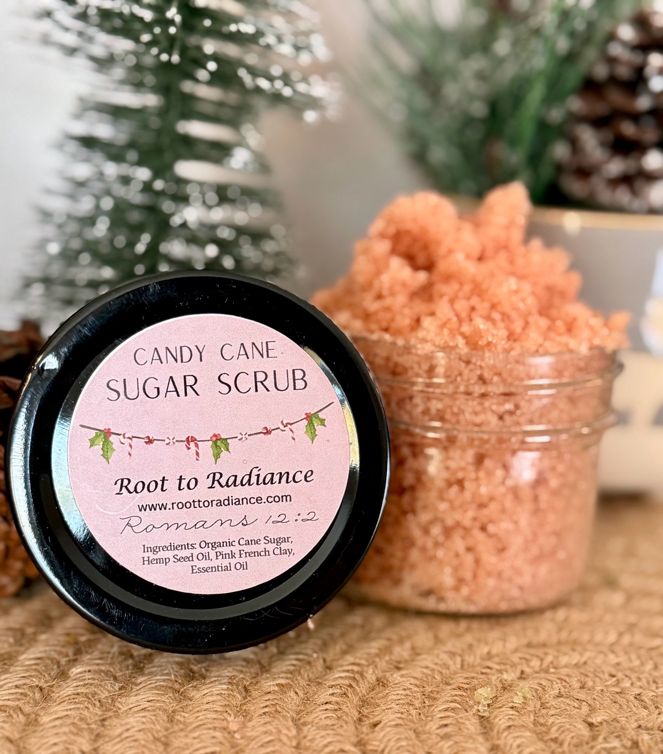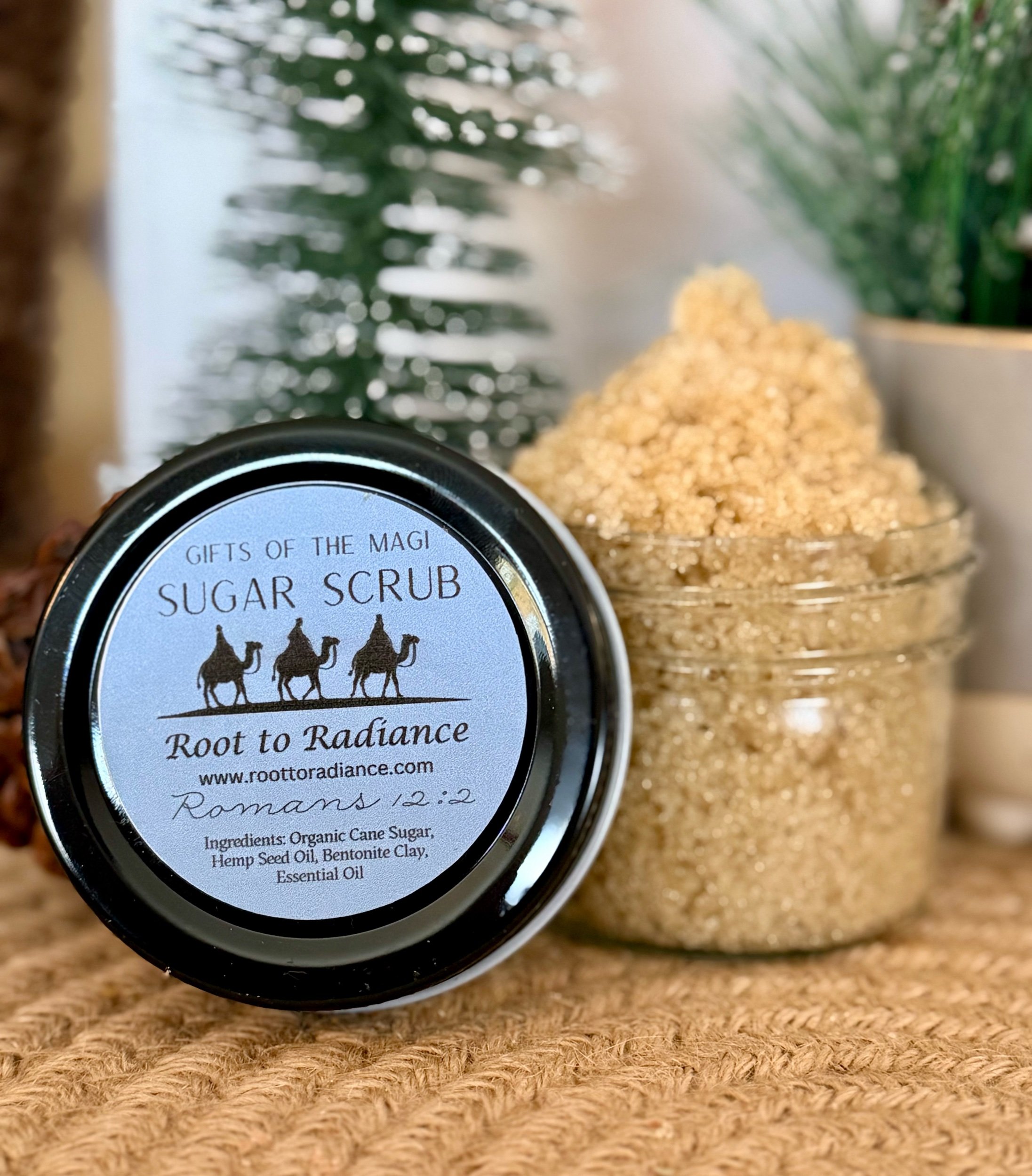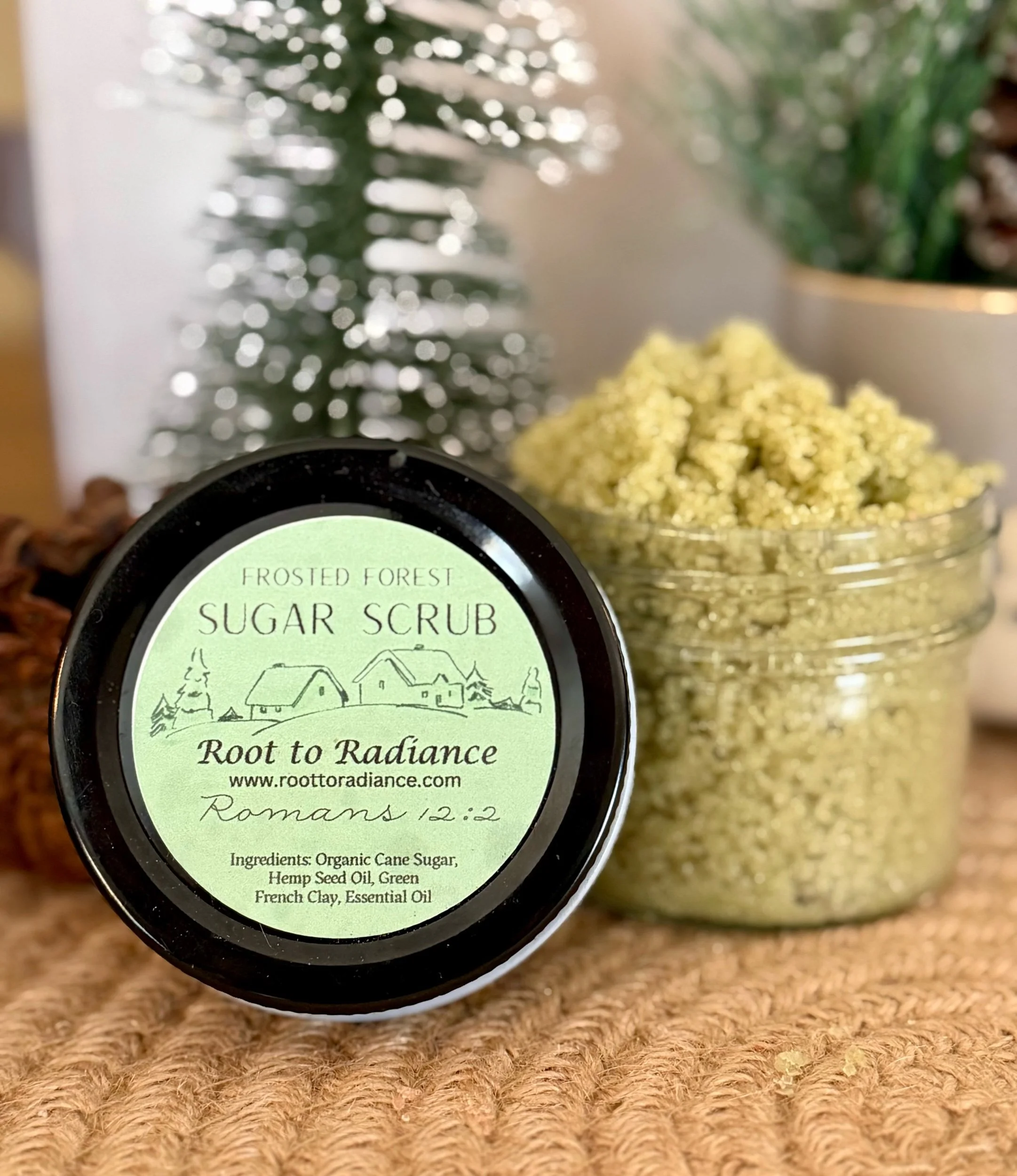 Step into the woods with our Frosted Forest Sugar Scrub, handcrafted for the holiday season. Made with organic cane sugar for gentle exfoliation and hemp seed oil to leave your skin soft, nourished, and deeply moisturized. A touch of green French clay helps purify and refresh the skin, giving this scrub its cool, forest-inspired feel.